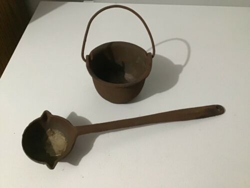 Vintage Cast Iron Pot, and Ladle For Melting Lead for Sinkers / Shot