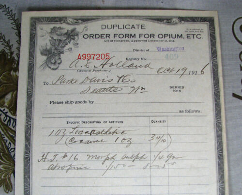 Title (ebay affiliate link): Obsolete 1916 old ORDER FORM for OPIUM COCAINE / SEDRO WOOLLEY WA Holland Drug
