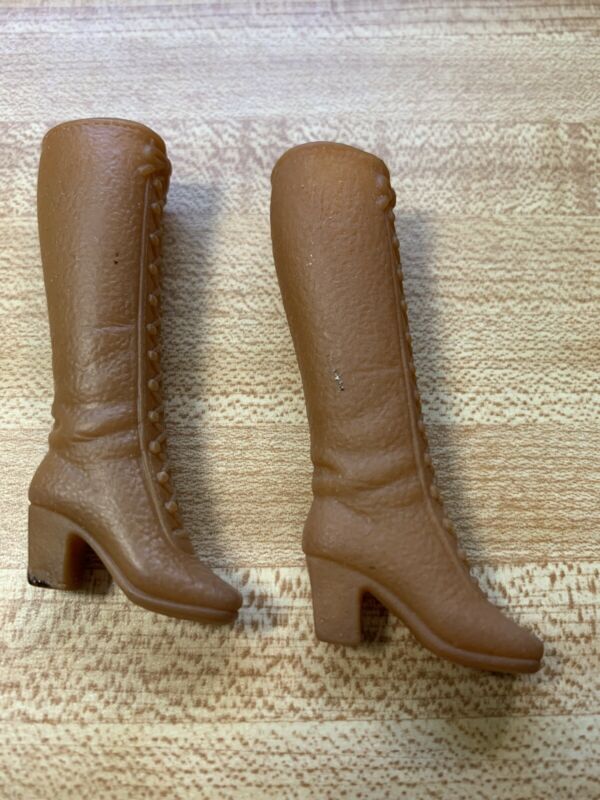 1970 BARBIE FRANCIE HTF SOFT LACE UP GOLDEN BROWN BOOTS Mattel MOD KOREA Vintage