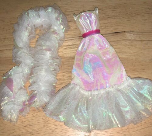 Vintage Barbie 1983 Crystal Barbie White Iridescent Dress Gown Boa Wrap, Minty