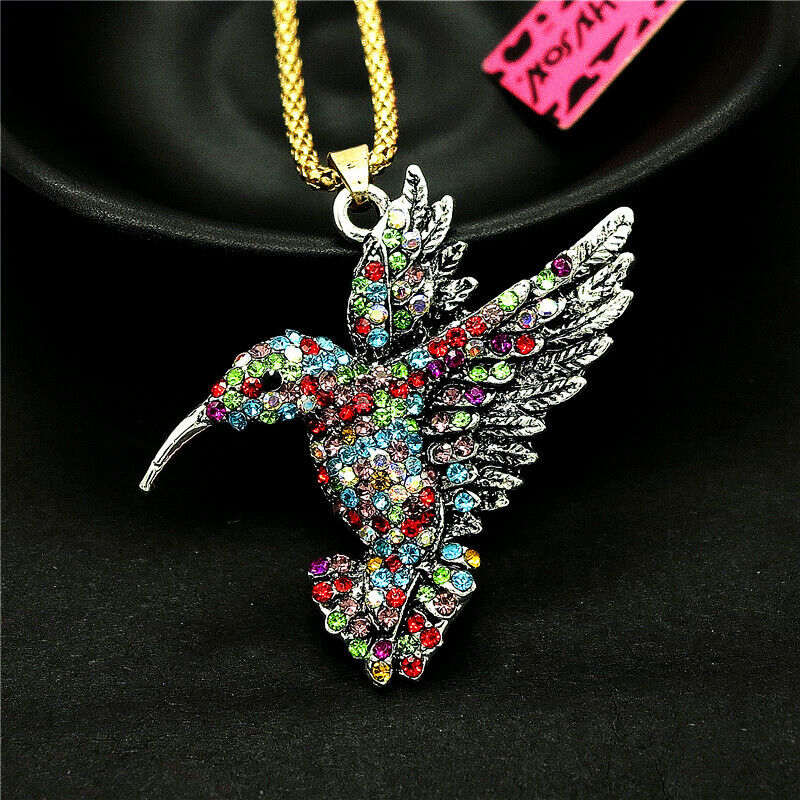 Title (ebay affiliate link): Betsey Johnson Colorful Crystal Vintage Hummingbird Sweater Chain Necklace Gifts