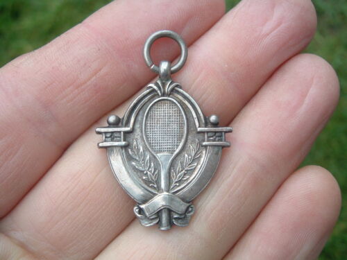 Antique Solid Silver Tennis Racket Pocket Watch Fob Medal 1925.