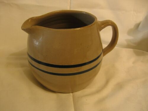 Title (ebay affiliate link): antique 6x6 crock pitcher with 2 blue stripes stoneware