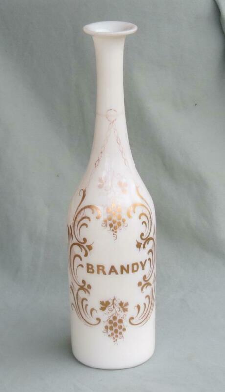 Title (ebay affiliate link): ANTIQUE RICHARDSONS OPALINE GLASS BRANDY BOTTLE DECANTER GOLD/GILT