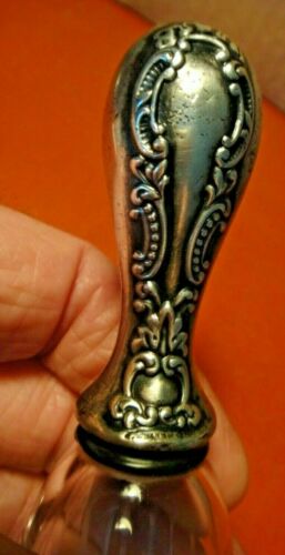 Antique UNIQUE ORNATE STERLING GLASS CANDLE SNUFFER ART NOUVEAU VICTORIAN DECO