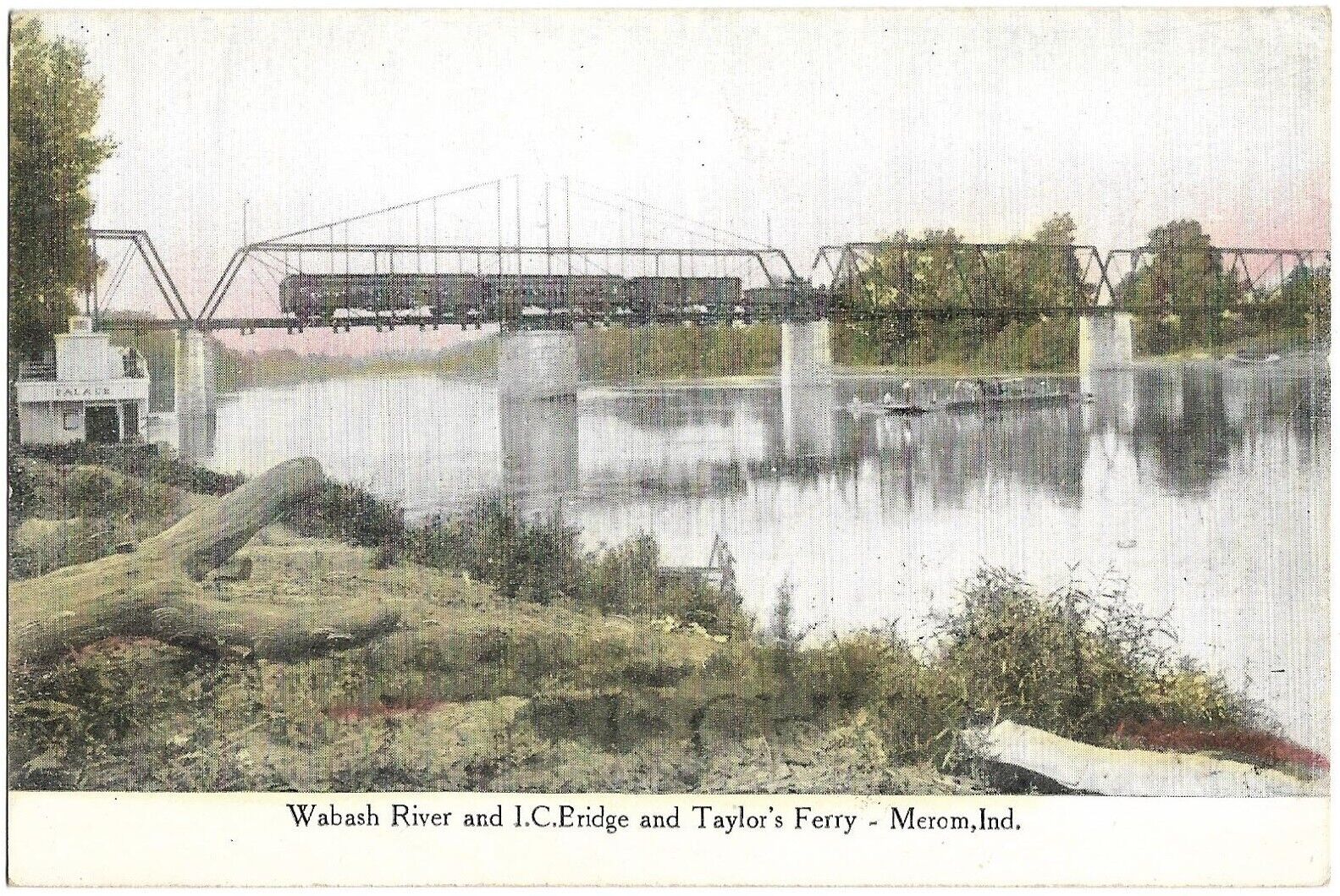 Title (ebay affiliate link): 1908 Antique Postcard Wabash River I.C. Bridge Taylors Ferry Merom Indiana IN