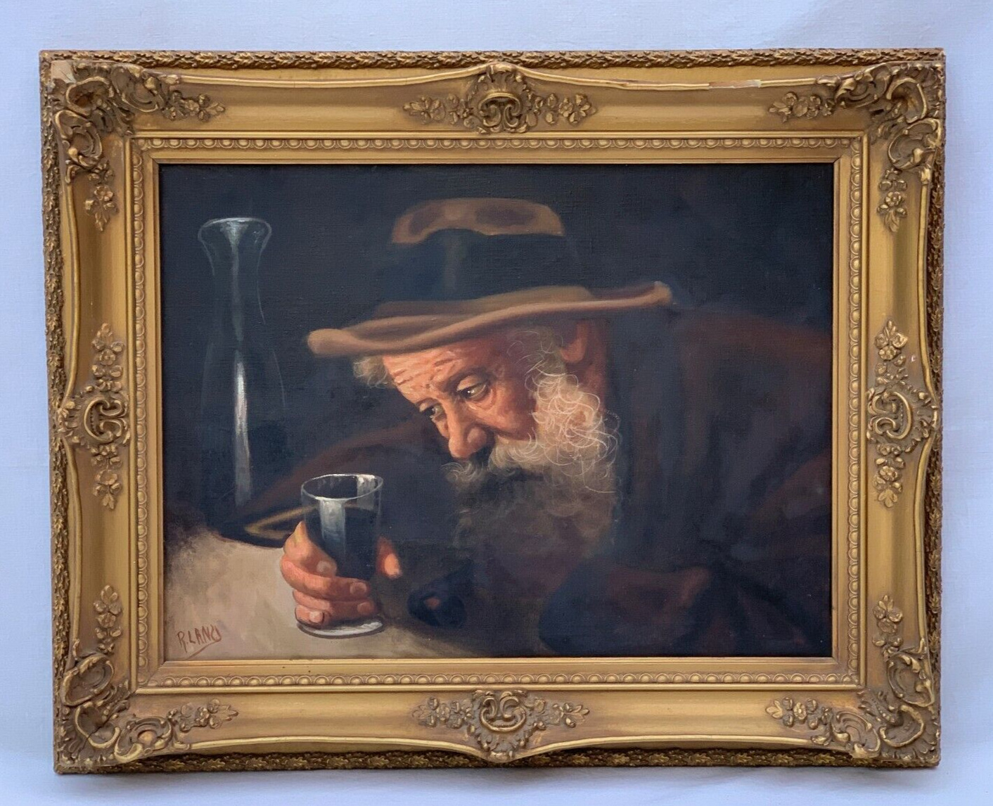 Title (ebay affiliate link): R LANG / R LANO OIL PAINTING DRUNK MAN WINO w PIPE 12 X 16 ANTIQUE GILT FRAME