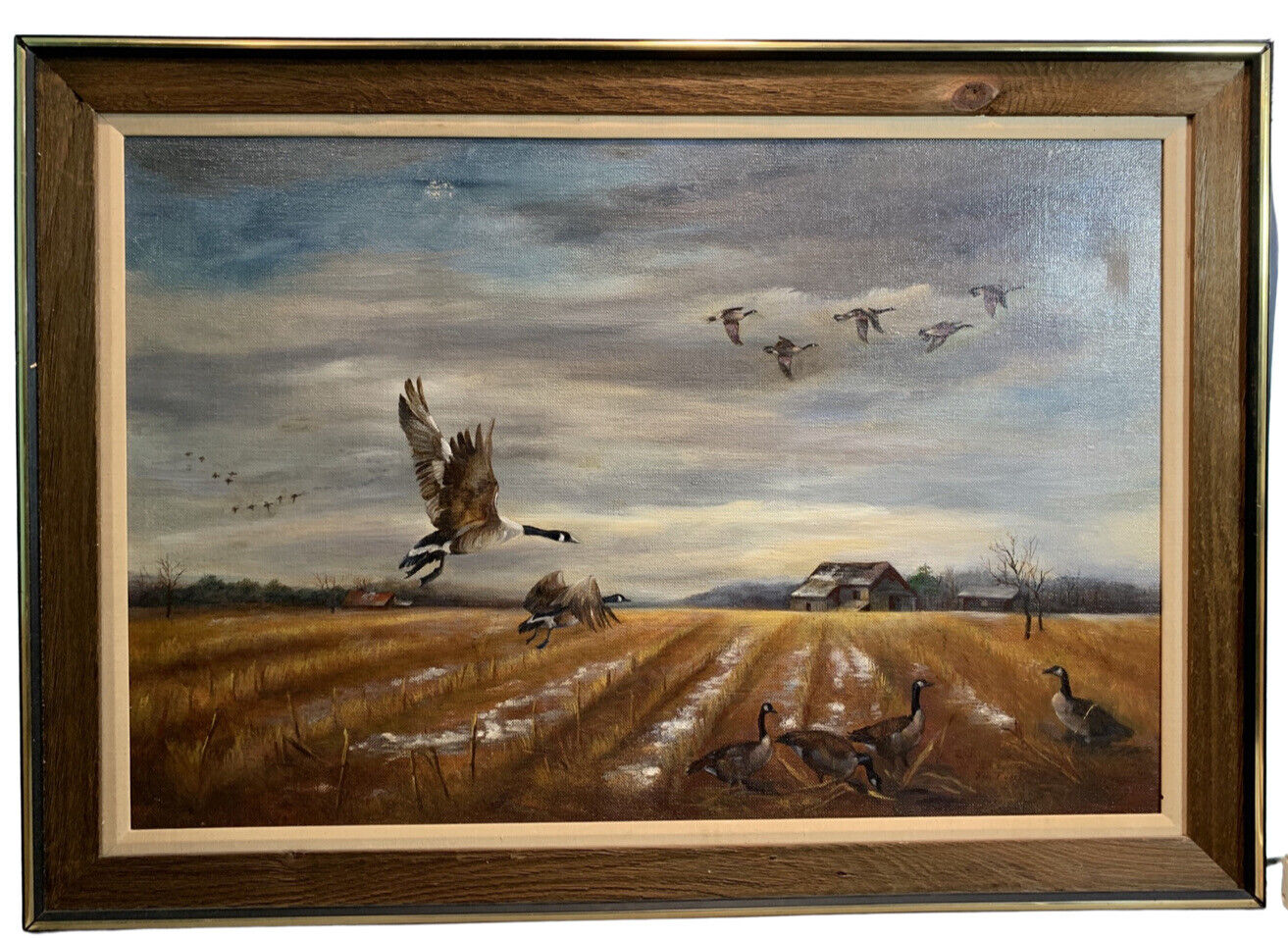 Vintage FH Ruark GOOSE HUNTING Abandoned FARM Old HUNT LODGE Oil PAINTING