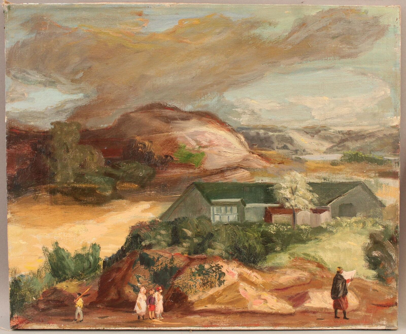 Original Antique GLEN RANNEY Oil Painting Social Realist WPA Landscape Figures