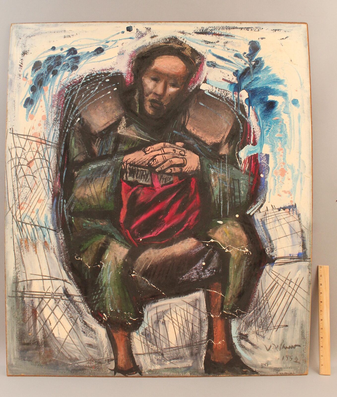 Lrg Antique 1952 Victor DePauw Expressionism NYC Subway Woman Portrait Painting