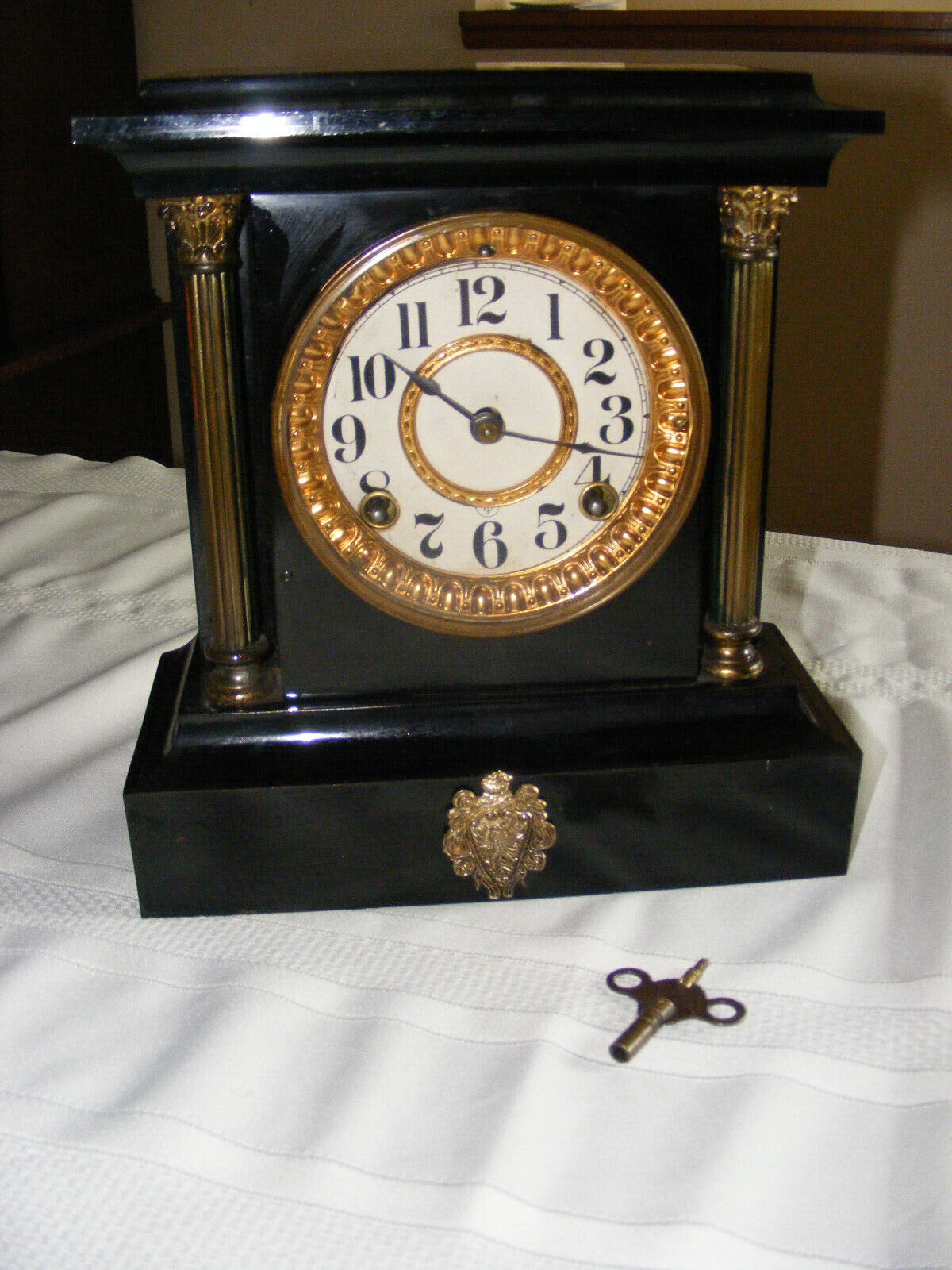 Title (ebay affiliate link): Vintage Old Cast Iron Ansonia Mantlel Clock New York USA Working Key