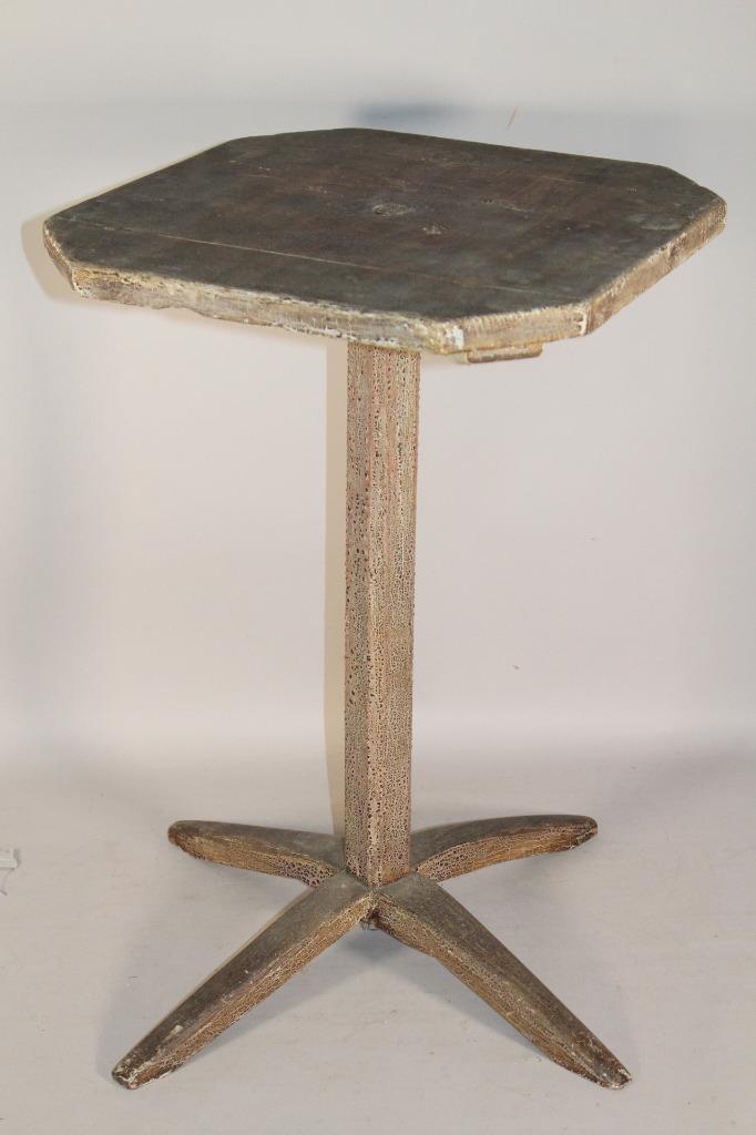 RARE 17TH C PILGRIM PLYMOUTH MA TRESTLE BASE XBASE CANDLESTAND ORIGINAL PAINT