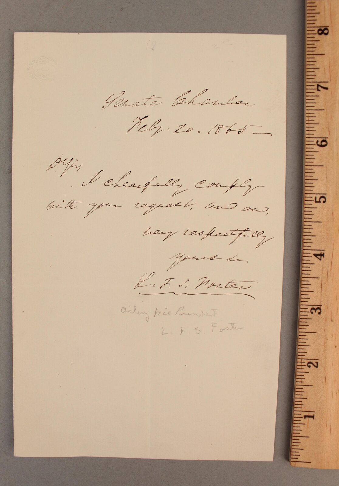 Antique 1865 Hand Written Letter Signed Senator/Vice President Lafayette Foster