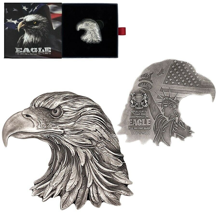 Title (ebay affiliate link): 2022 Chad 1 oz Silver American Eagle Shaped High Relief Coin .999 Fine w/Box