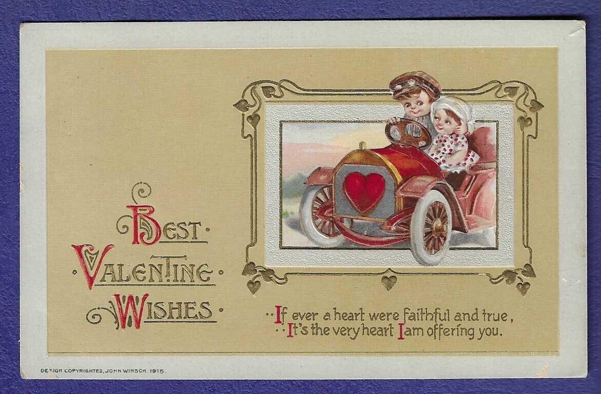 Title (ebay affiliate link): Antique Valentines Day 34Boy/girl in car34 John Winsch postcard used 1922