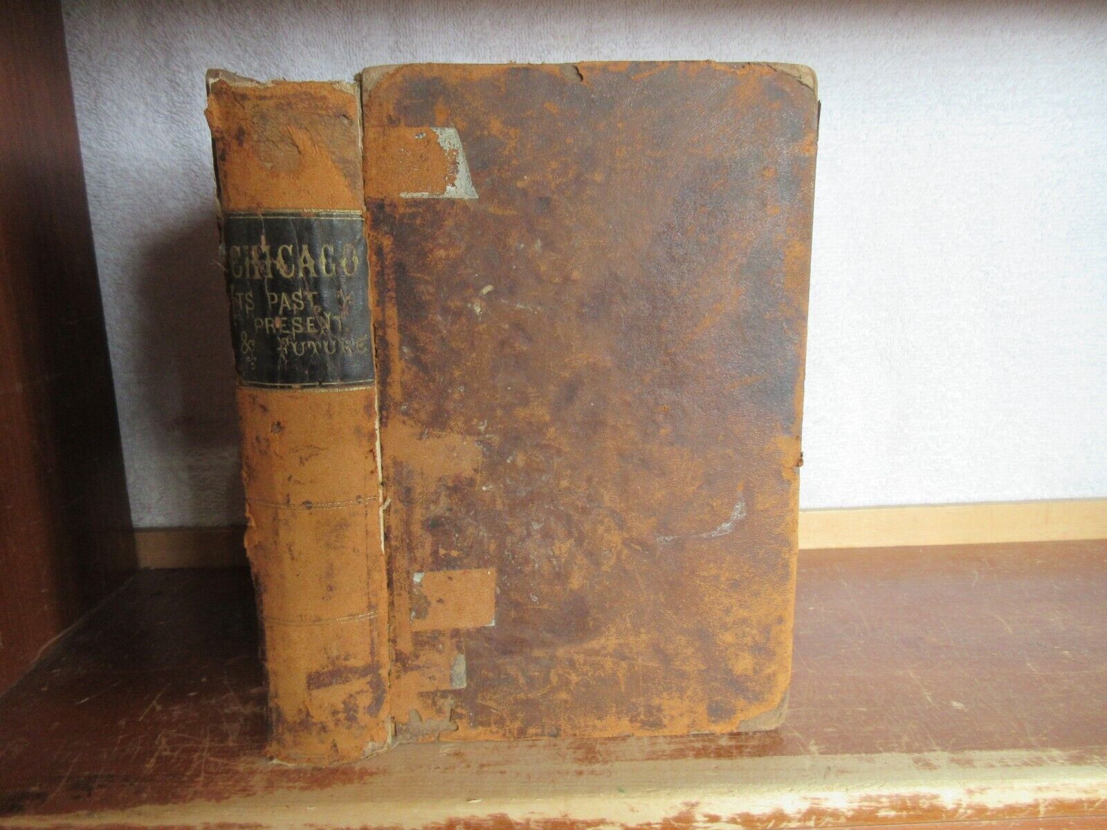 Old THE GREAT CONFLAGRATION CHICAGO Leather Book 1871 FIRE DISASTER ANTIQUE MAP