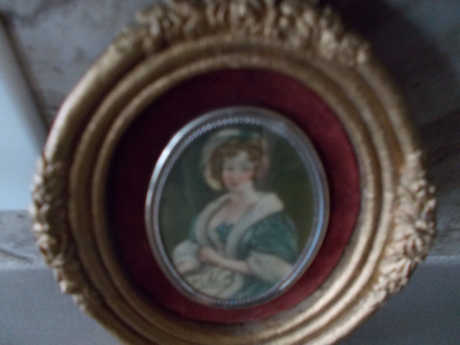 ANTIQUE FRENCH MINIATURE PORTRAIT/PRINT IN DOUBLE PICTURE FRAME