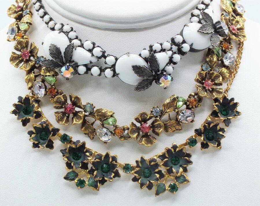 Title (ebay affiliate link): VINTAGE FLOWER RHINESTONE LINK COLLAR NECKLACE LOT WHITE GLASS GREEN AUSTRIA