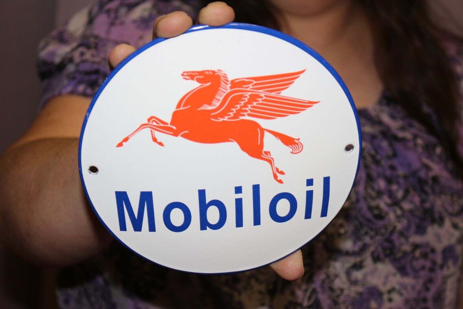 Title (ebay affiliate link): Mobil Mobiloil Pegasus Oil Gas Station Curved Porcelain Metal Sign