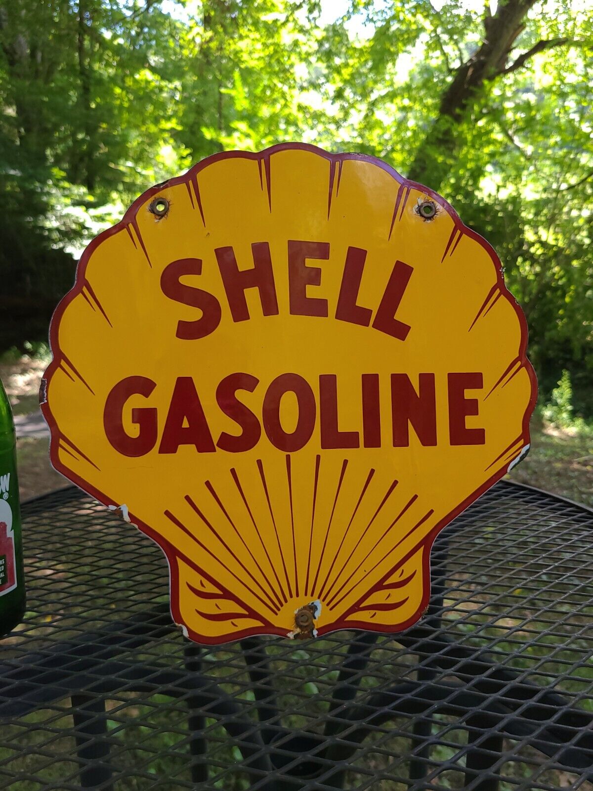 Porcelain Shell gasoline metal vintage style motor oil gas pump plate sign