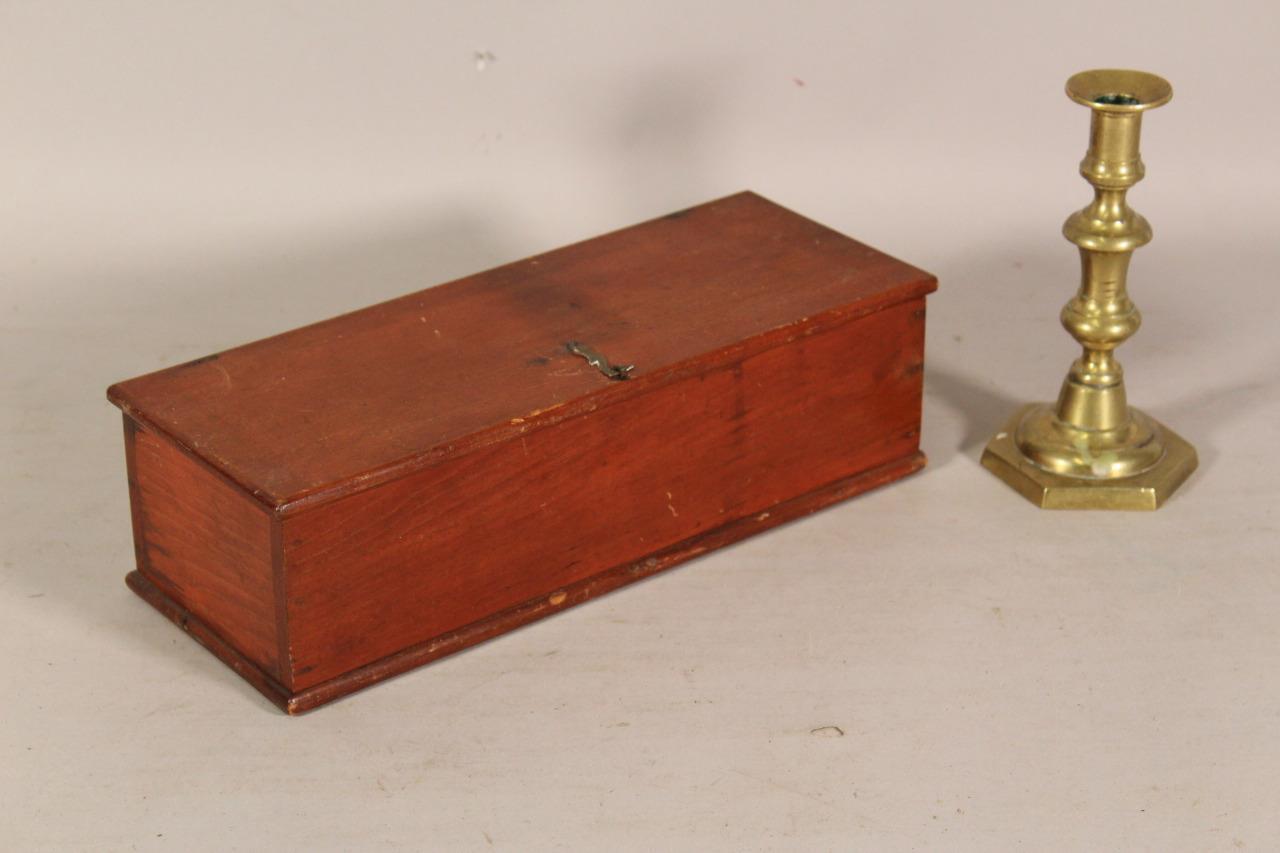 RARE 19TH C ENFIELD CT SHAKER GLOVE OR SEWING BOX IN ORIGINAL RED STAIN