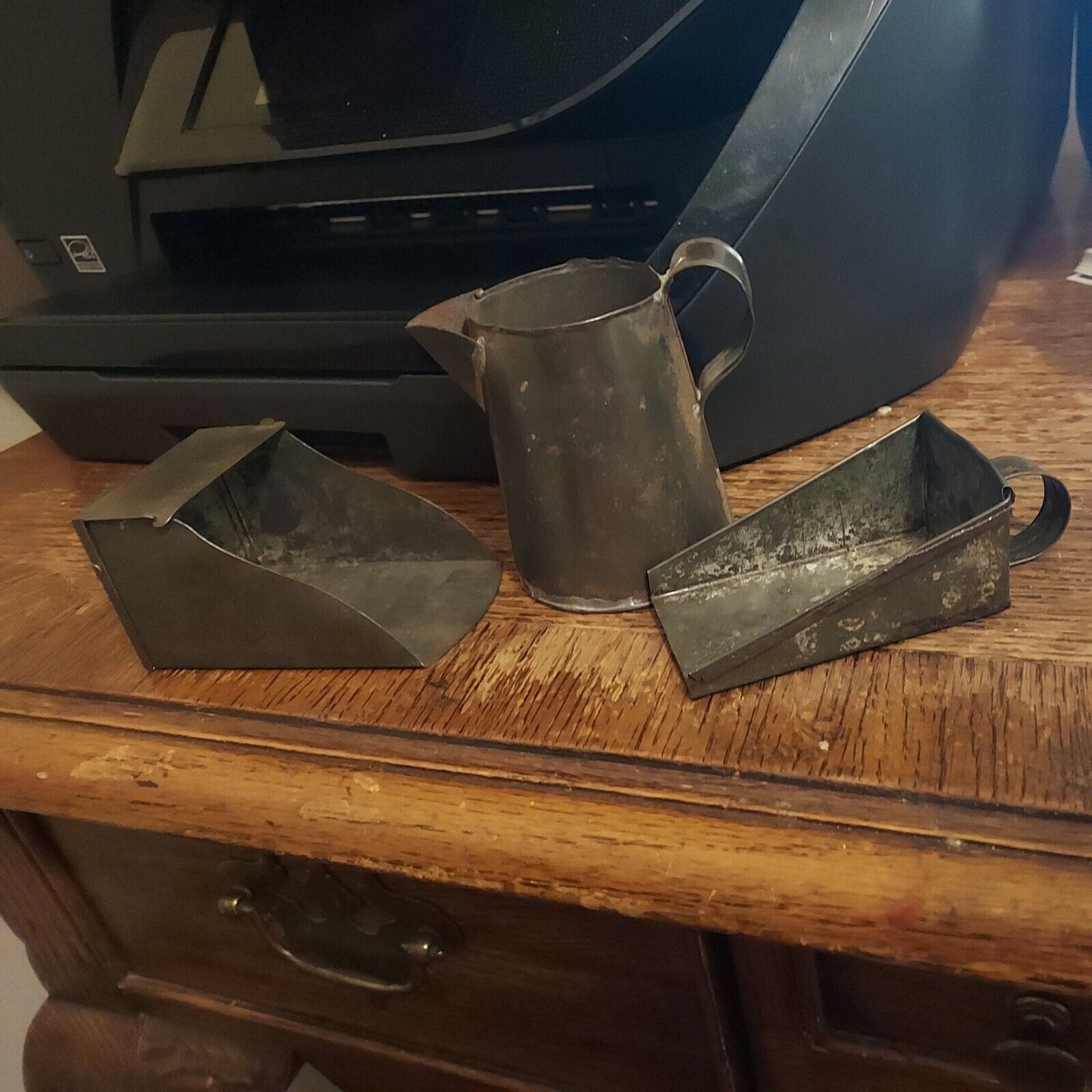 Title (ebay affiliate link): Primitive Tin Ware Kitchen Scoops Mini Pitcher