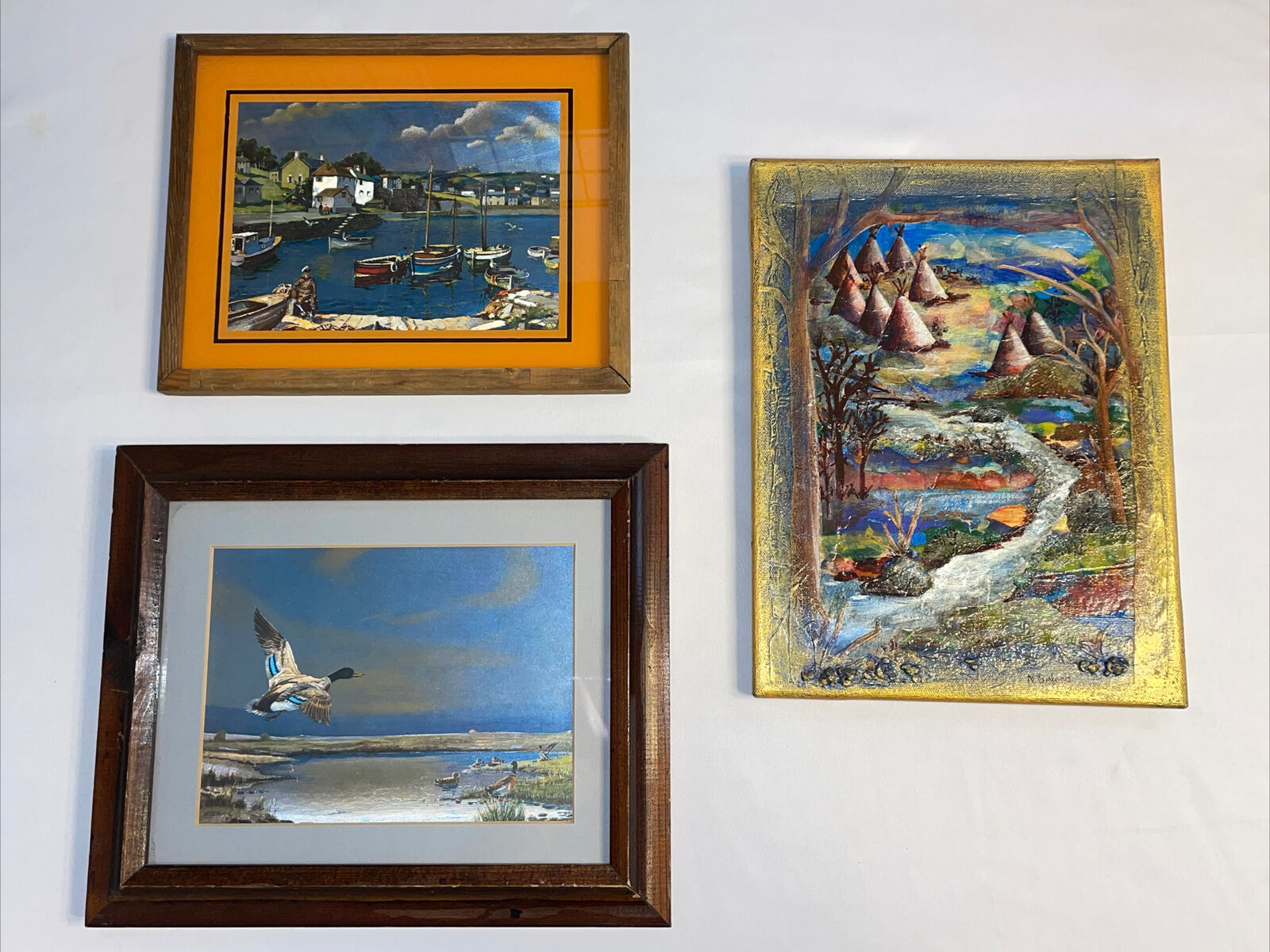 Title (ebay affiliate link): 3 Old VINTAGE SMALL Pieces Oil Reflective Art Canvas Framed signed Lot