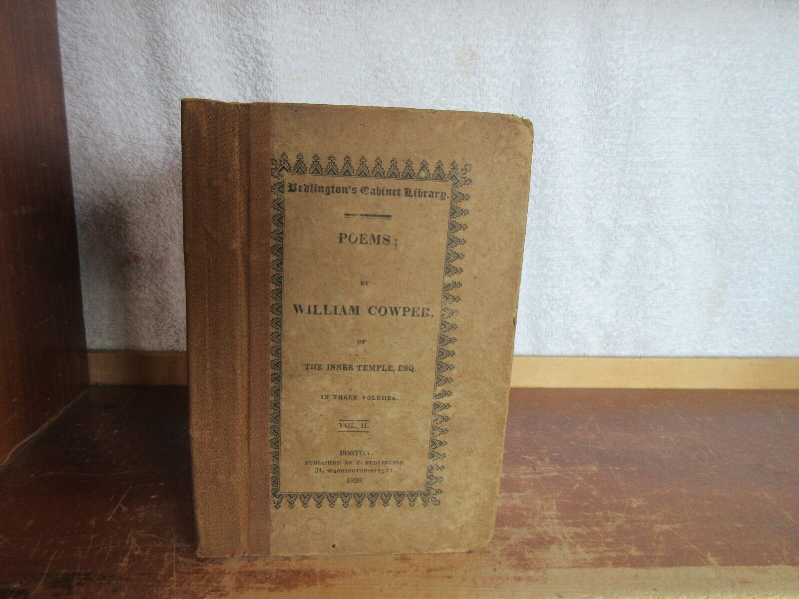 Title (ebay affiliate link): Old POEMS Book 1826 WILLIAM COWPER THE TASK FRIENDSHIP HEROISM ANTIQUE WRITING