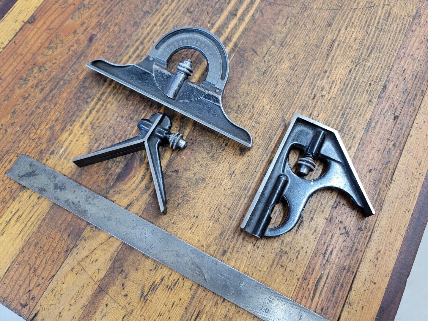 ANTIQUE Tools EARLY STARRETT Combination Square Compass Machinist Rule 1234 ☆USA