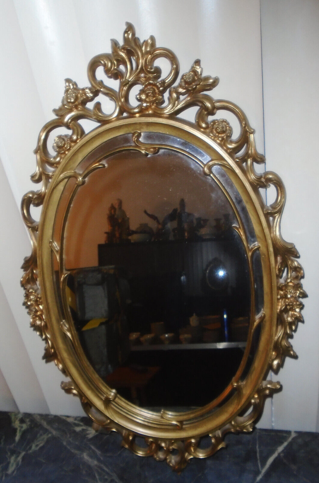 Title (ebay affiliate link): Vtg SYROCO OVAL Wall MIRROR Floral Rosettes GOLD Ornate HOLLYWOOD REGENCY MCM