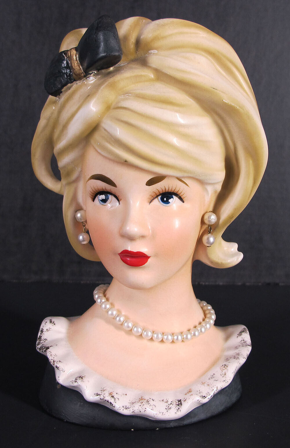 Title (ebay affiliate link): Vintage Relpo Lady Head Vase K1612 Black w/Bow Pearls Shabby Chic Cond yqz