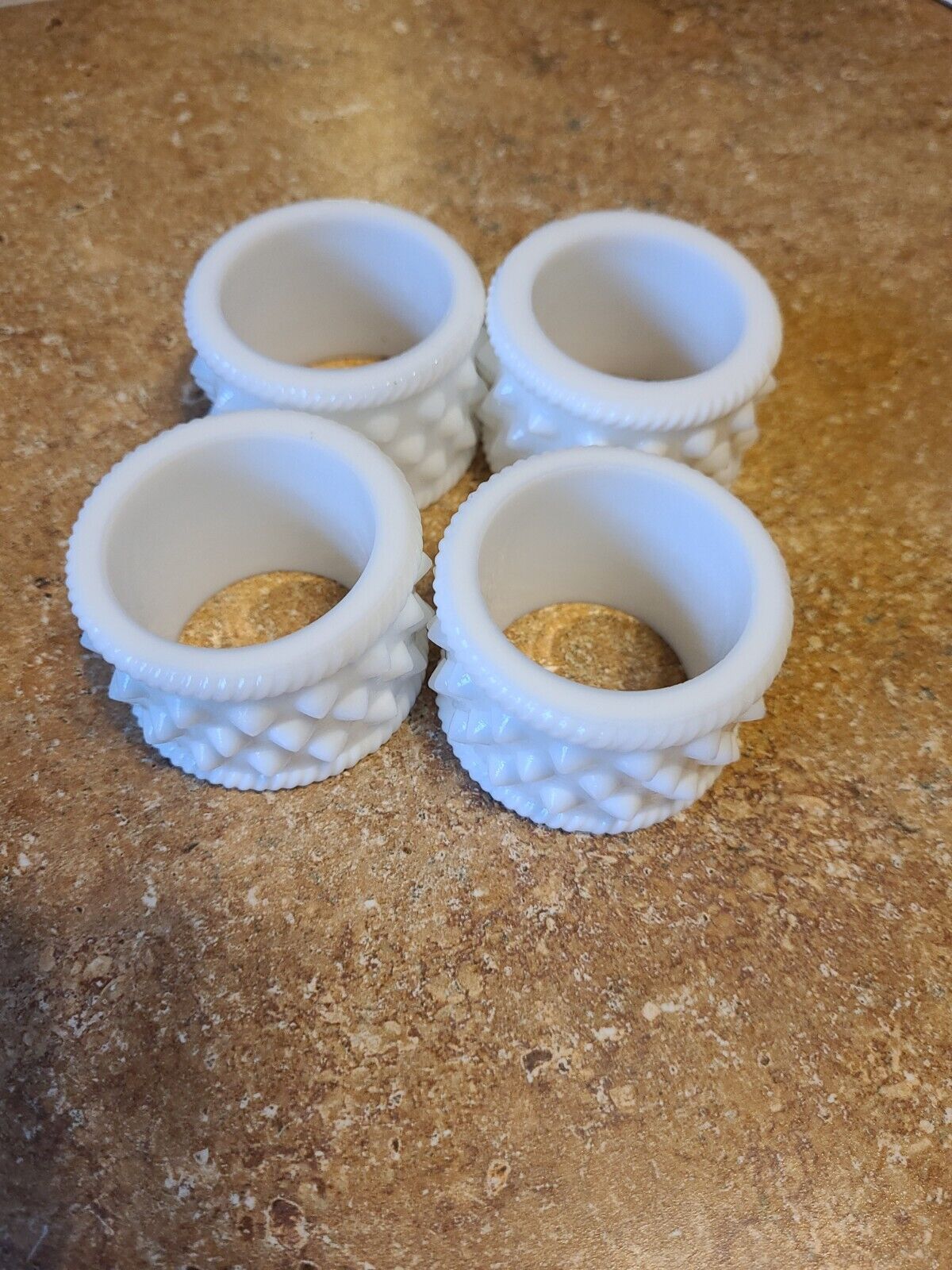 4 Vintage FENTON HOBNAIL 234 NAPKIN RINGS White Milk Glass Farmhouse