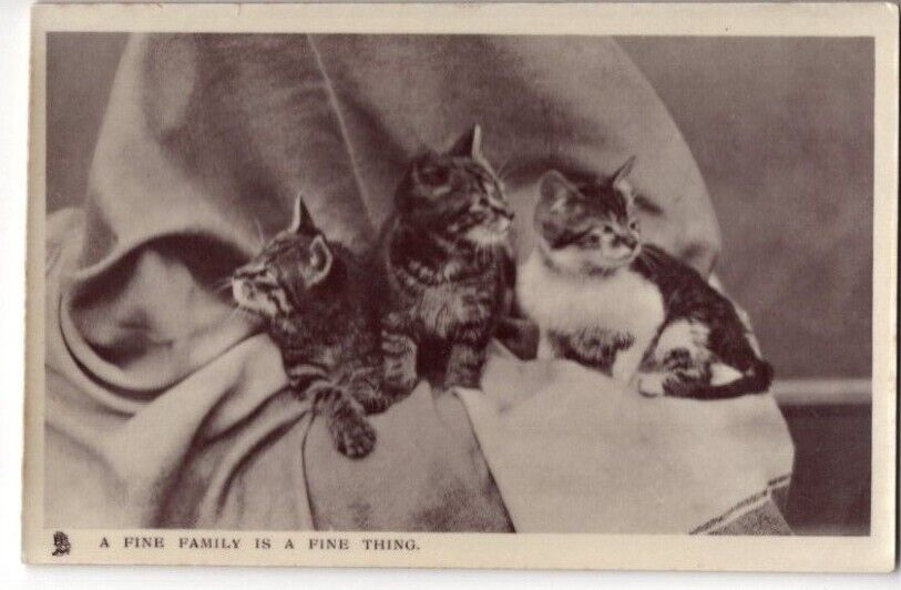 ANTIQUE RAPHAEL TUCK 34HAPPY CATLAND34 Postcard 34A FINE FAMILY IS A FINE THING34