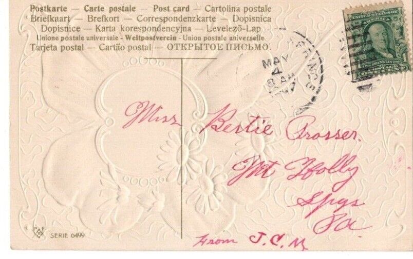 Title (ebay affiliate link): ANTIQUE EMBOSSED FRIENDSHIP Postcard PFB DAISIES ON FOURLEAF CLOVER