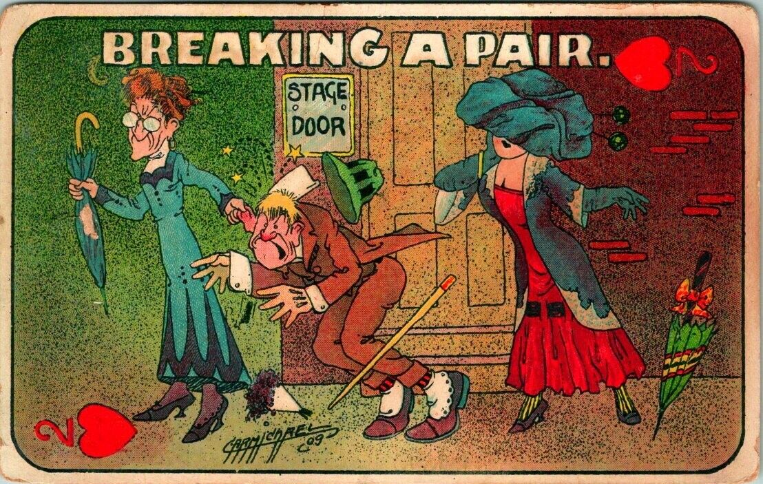 C625293 BREAKING A PAIR ANTIQUE POSTCARD.
