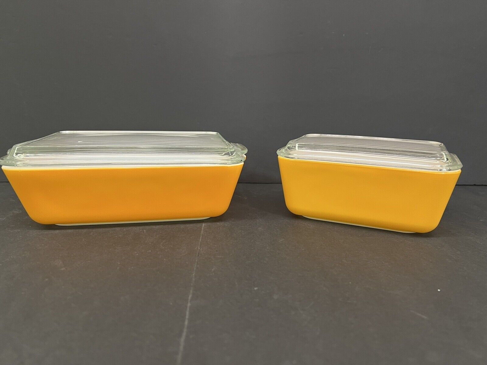 2 PYREX Orange REFRIGERATOR DISHES LIDS