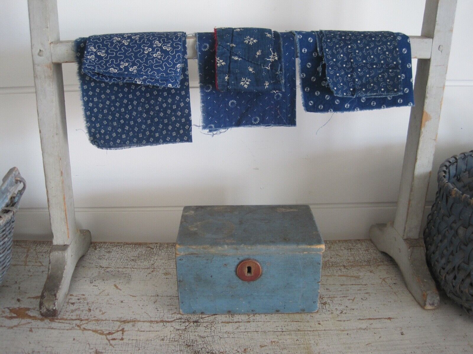 Title (ebay affiliate link): Six Old Pieces of Blue and White Calico Fabric Textile American AAFA