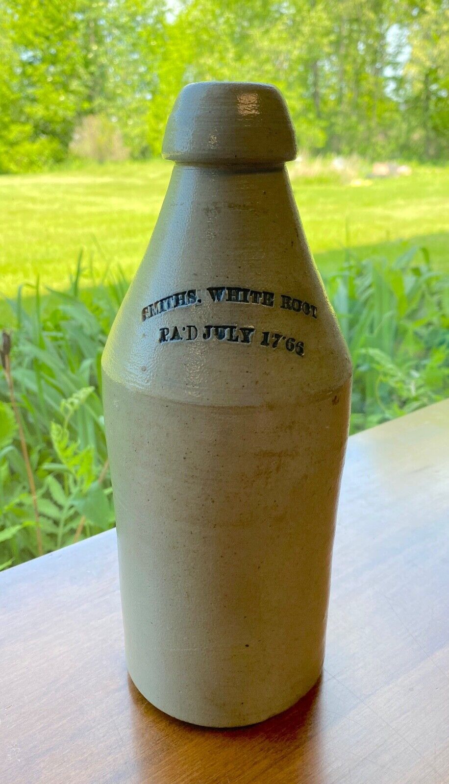 American Stoneware Bottle SMITHS WHITE ROOT Pat July 17 1866 Dover NH W/Cobalt