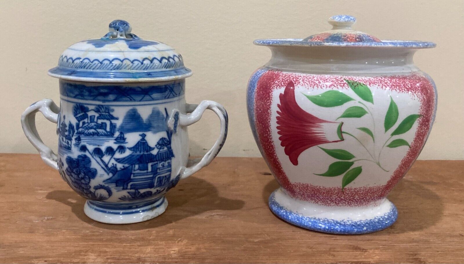 Title (ebay affiliate link): 2 Early 19th c Porcelain Sugar BowlsSpatterware Chinese Export