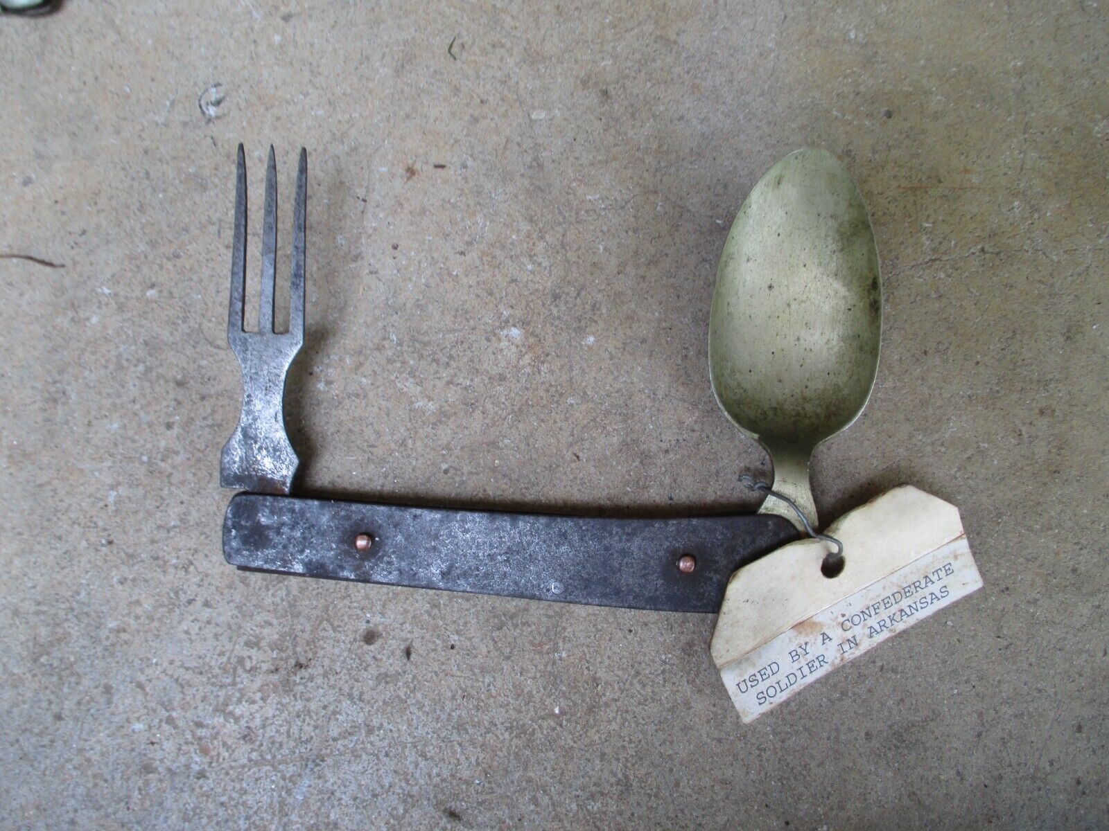 ANTIQUE CIVIL WAR RELIC FOLDING CS SPOON/FORK UTENSIL CONFEDERATE SOLDIER RELIC