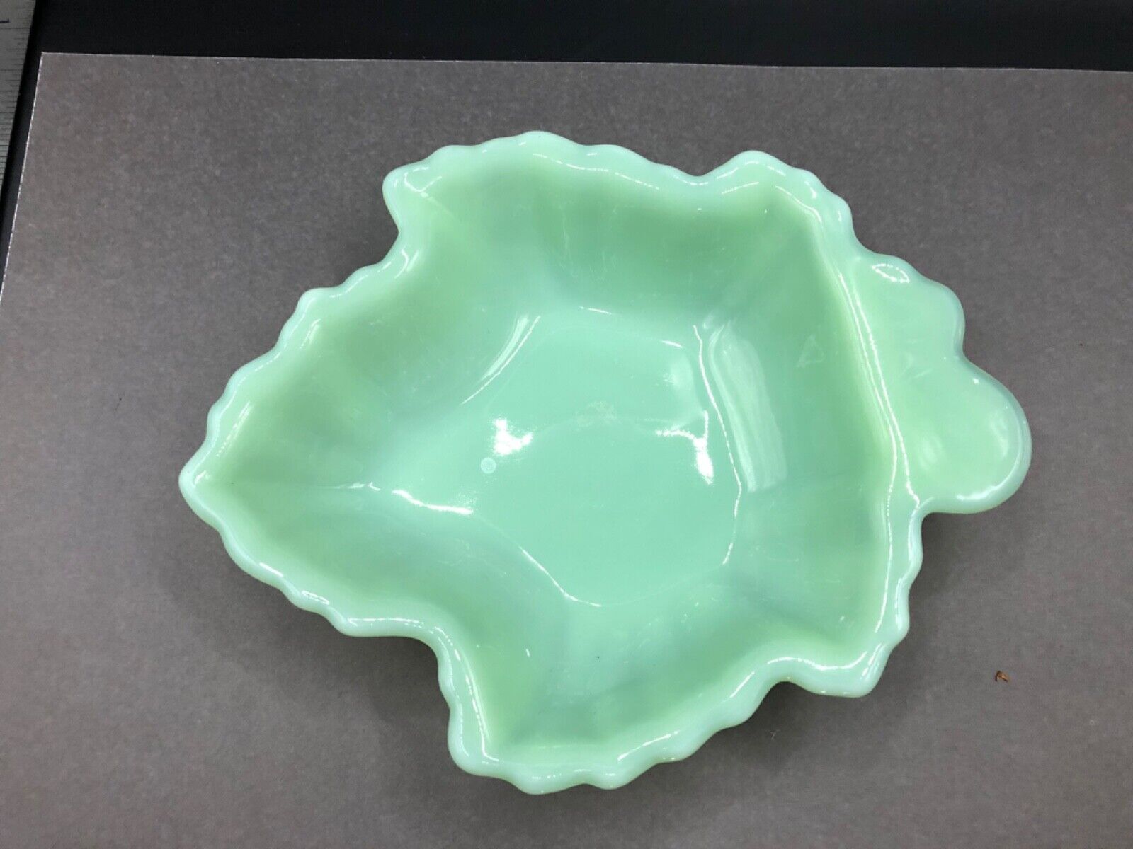 Vintage Jadeite Maple Leaf shaped candy dish or spoon rest Fire King Milk Glass