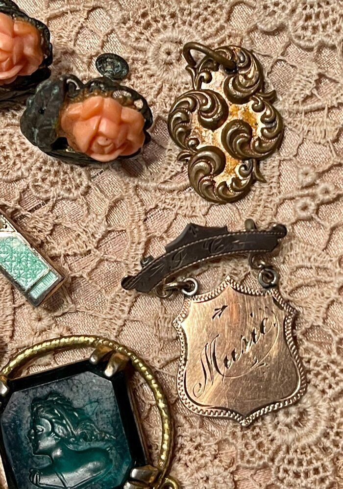 Title (ebay affiliate link): Antique Earrings Charm Barrette Ring Pin Jewelry Lot C Wear or Craft 1.00 NR