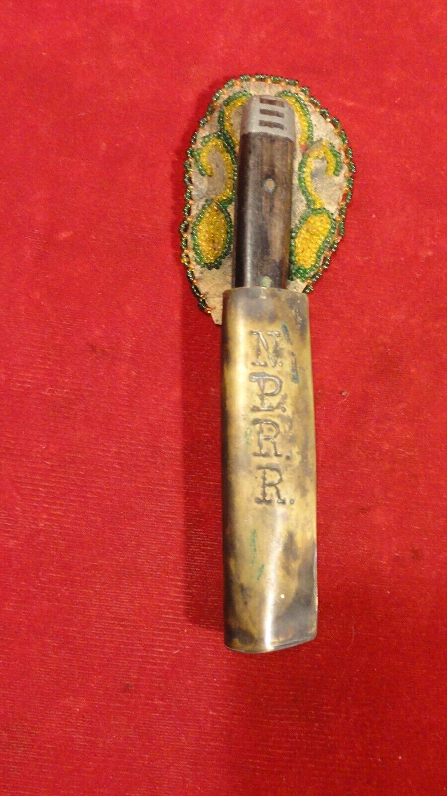 Title (ebay affiliate link): ANTIQUE NATIVE AMERICAN KNIFE W/ BRASS SHEATH BEAD WORK FROGROSEBUD RESERVAT