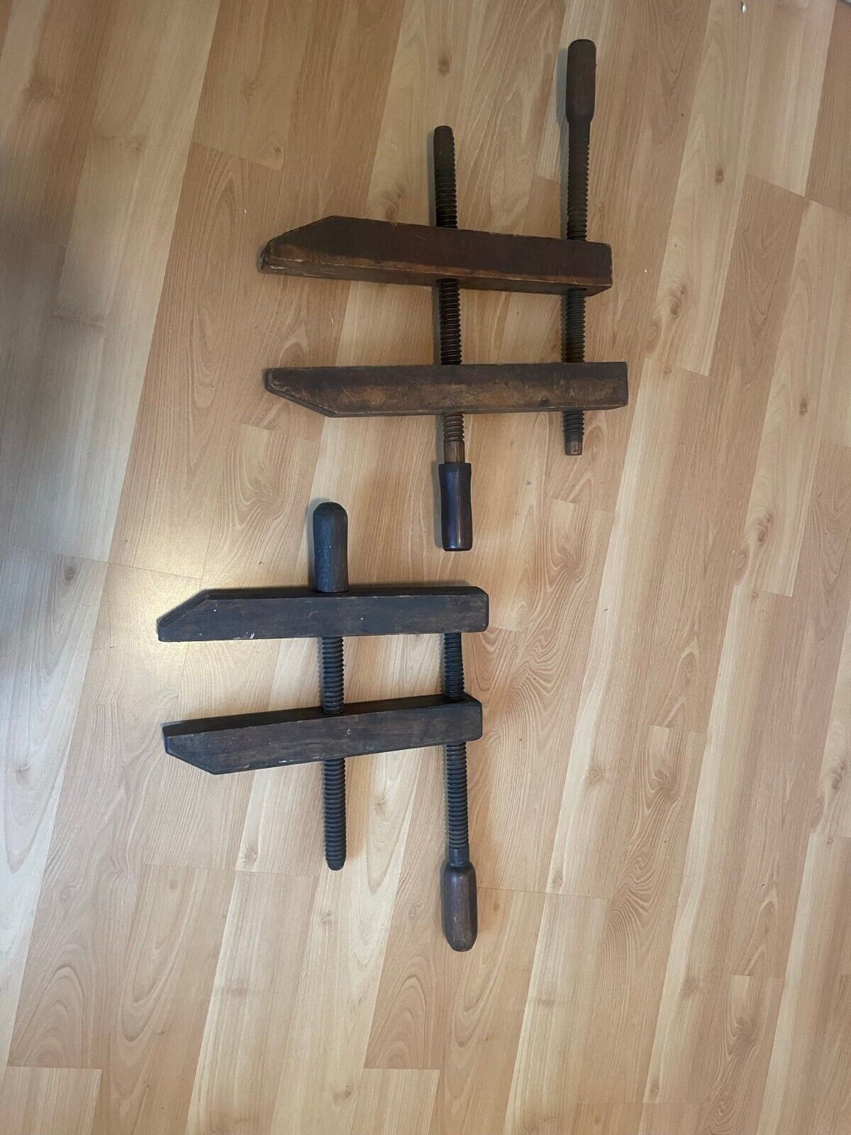 Title (ebay affiliate link): Vintage Primative Large Wooden Vise Clamp Wood Working Tool Screw Decor Antique