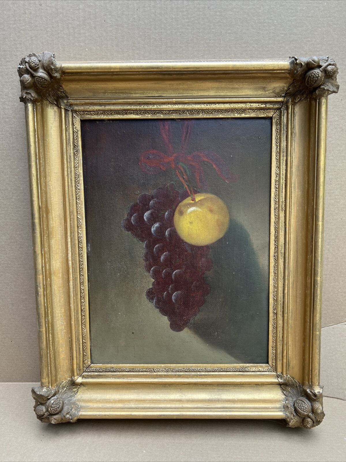 Title (ebay affiliate link): antique American School fruit still life grape apple 19c oil painting