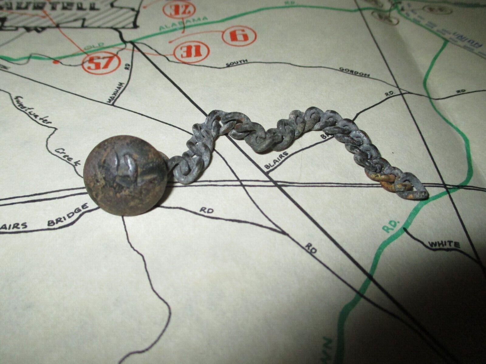 ANTIQUE CIVIL WAR DUG RELIC SOLDIER WATCH FOB CHAIN W/UNION EAGLE CUFF BUTTON