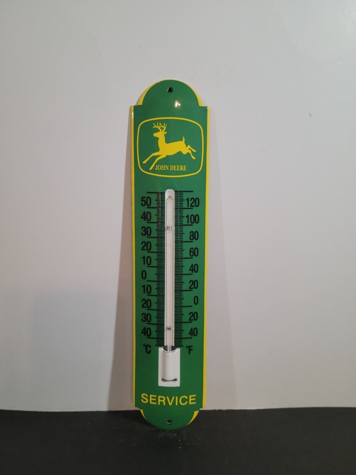 Title (ebay affiliate link): VINTAGE PORCELAIN JOHN DEEREGREEN THERMOMETER SIGN