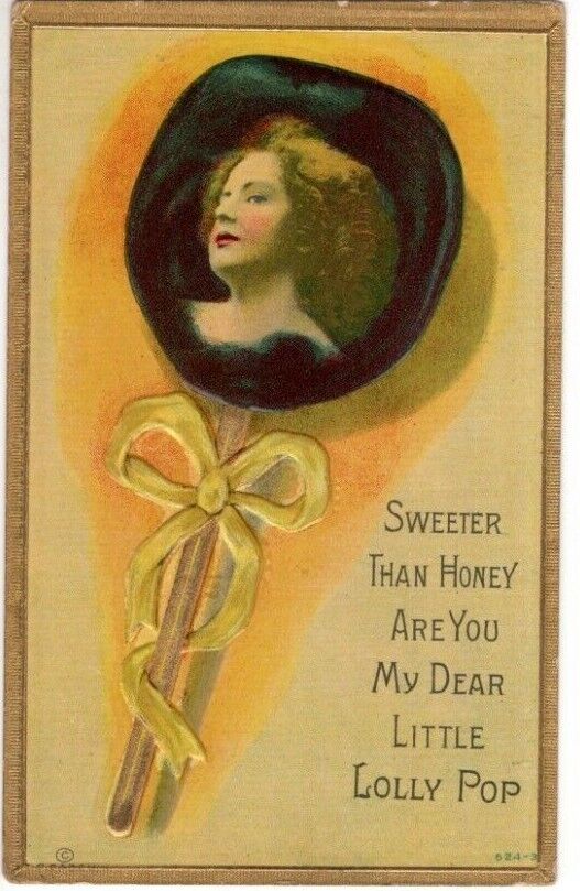 Title (ebay affiliate link): ANTIQUE Postcard 34SWEETER THAN HONEY ARE YOU MY DEAR LITTLE LOLLY POP34