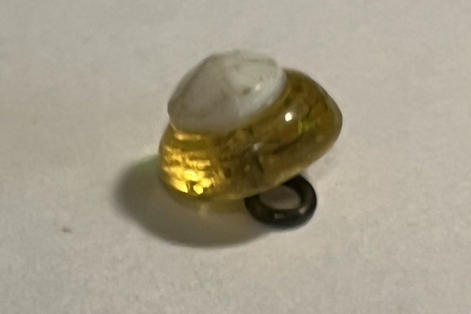 antique demi amber glass charmstring swirl back milk glass cap Button