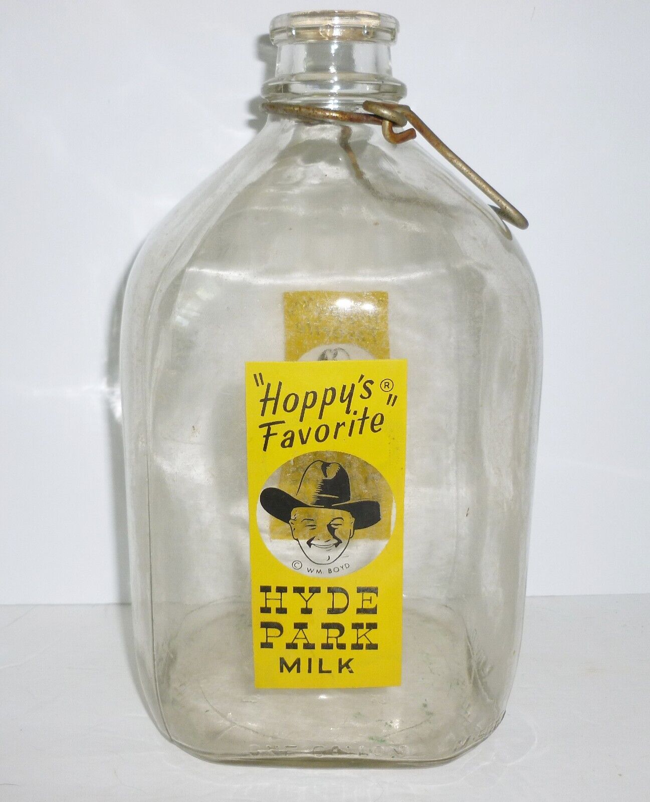HOPALONG CASSIDY GLASS MILK JUG GALLON vintage western HYDE PARK